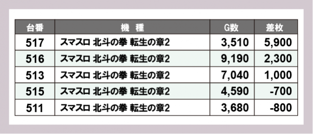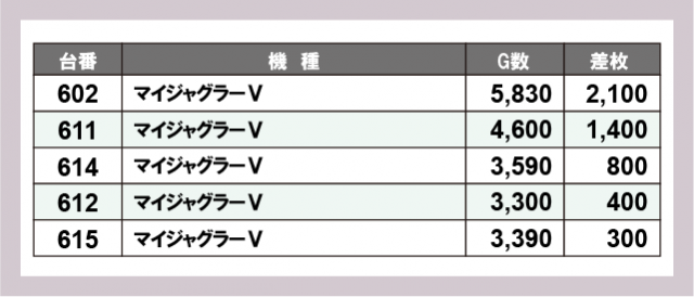 ※差枚数順に掲載しています