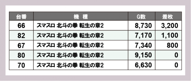 ※差枚数順に掲載しています