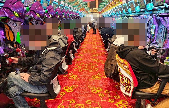 「新世紀エヴァンゲリオン~未来への咆哮~」や「PA大海物語5ブラックLT99ver.」に笑顔のプレイヤーがおり、有意義な時間を過ごしている印象を受けた。
