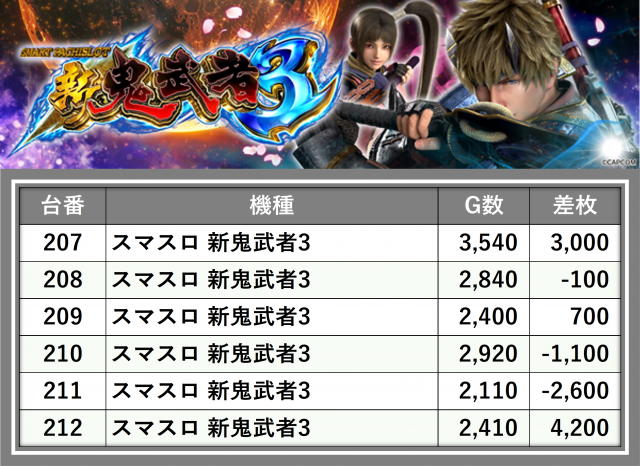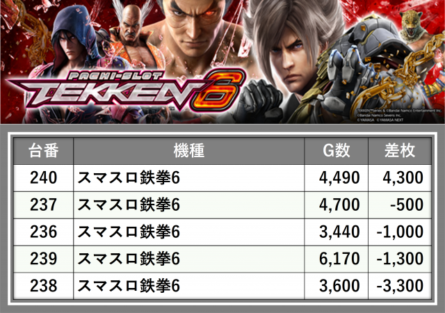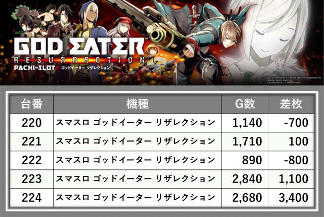 厳選された取材対象機種をはじめ、その他スロット全体から好記録が飛び出した!プレイヤーが楽しんだ1日を下記データにて振り返ってみて欲しい。