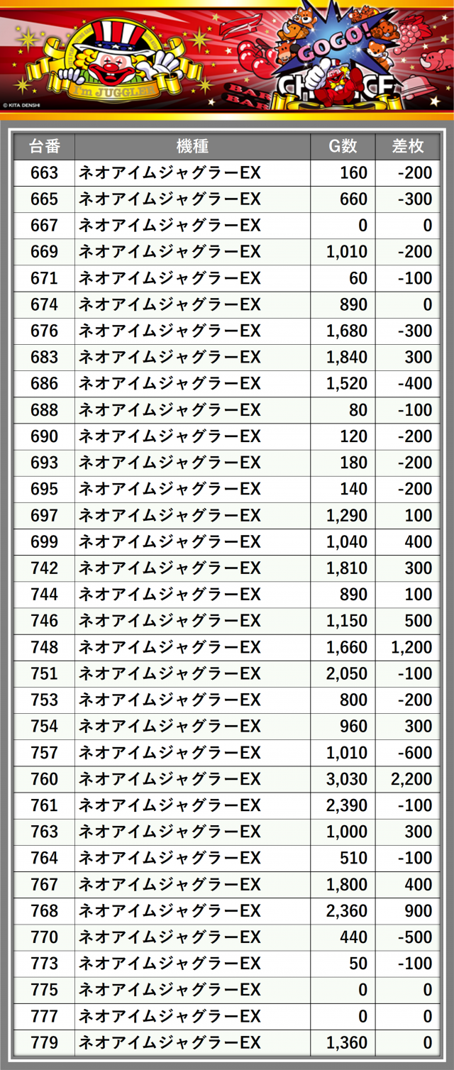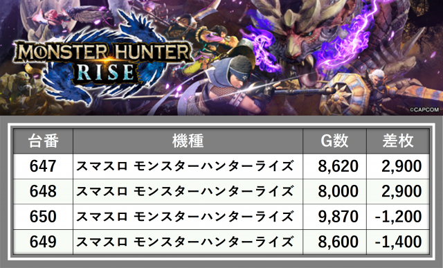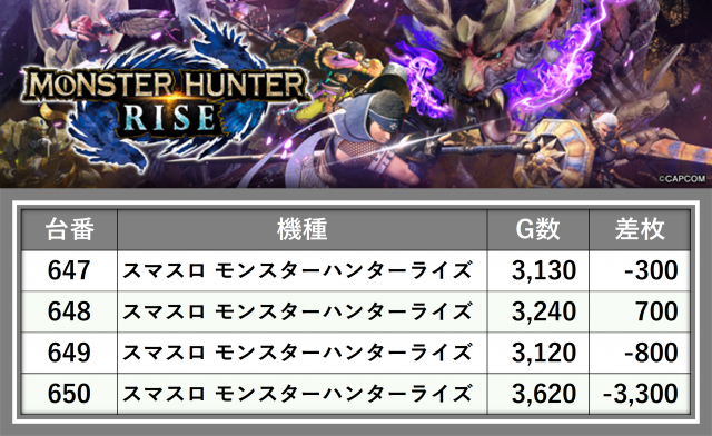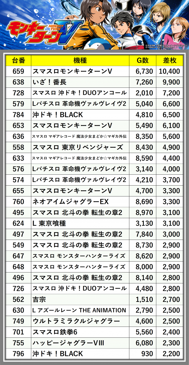 厳選された取材対象機種をはじめ、その他スロット全体から好記録が飛び出した!プレイヤーが楽しんだ1日を下記データにて振り返ってみて欲しい。