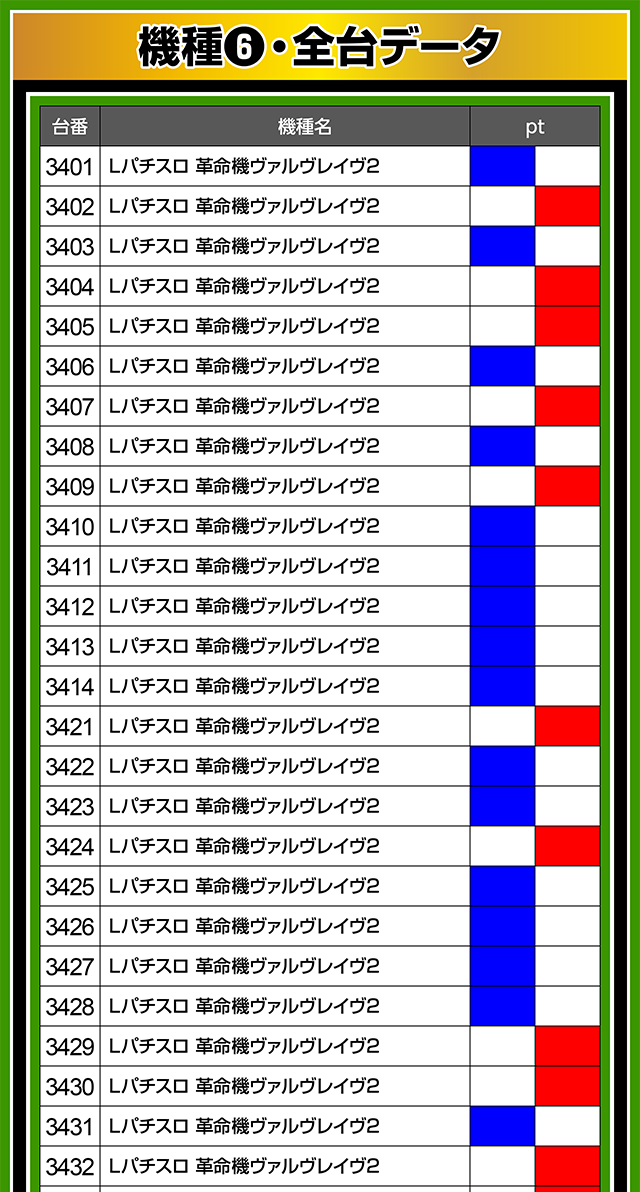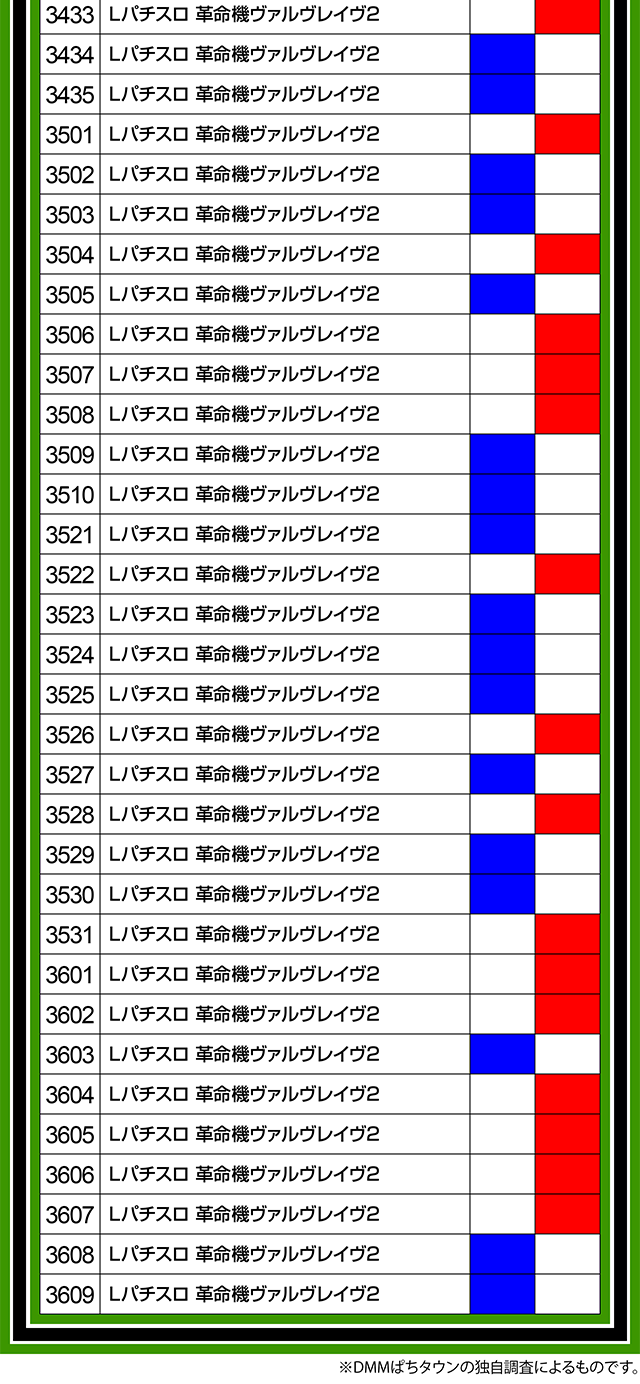 『Lパチスロ 革命機ヴァルヴレイヴ2』の3404番台や3602番台にも楽しげな姿があり、どちらの機種も多くの台がプラスとなった。