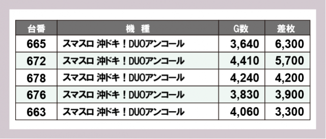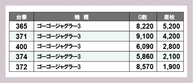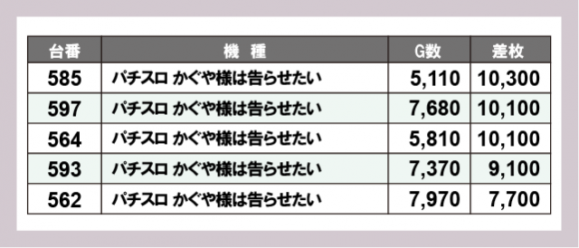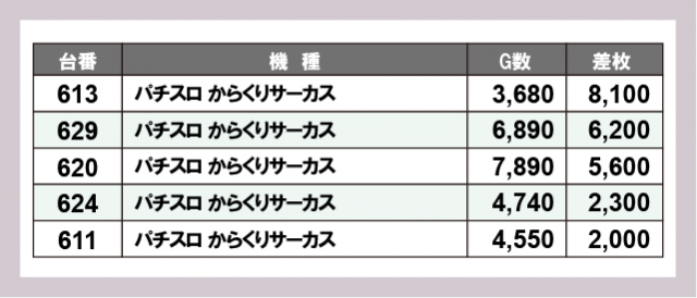 ※差枚数順に掲載しています