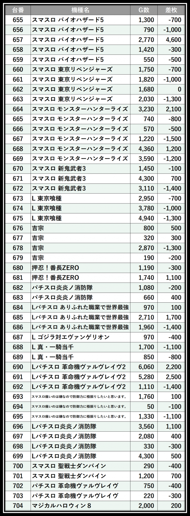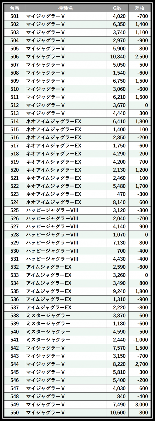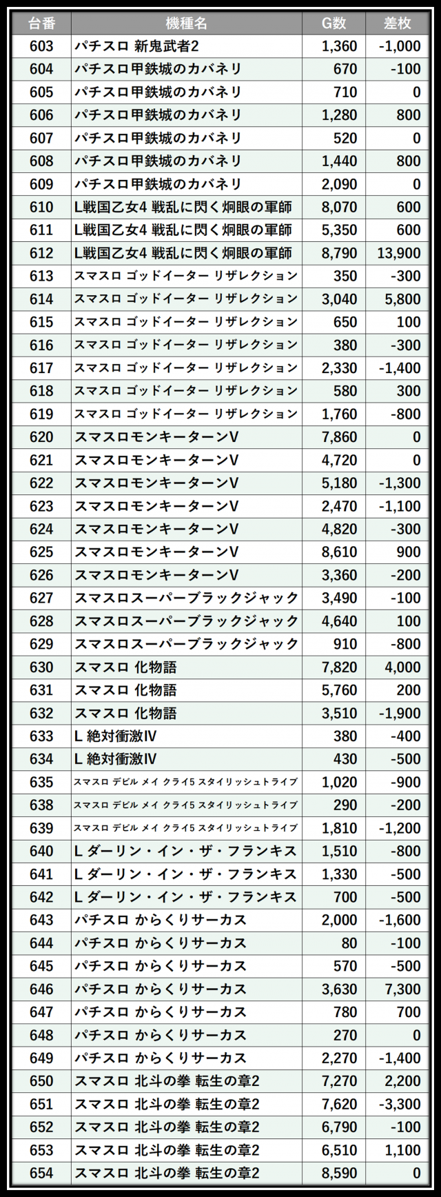 ※差枚数順に掲載しています