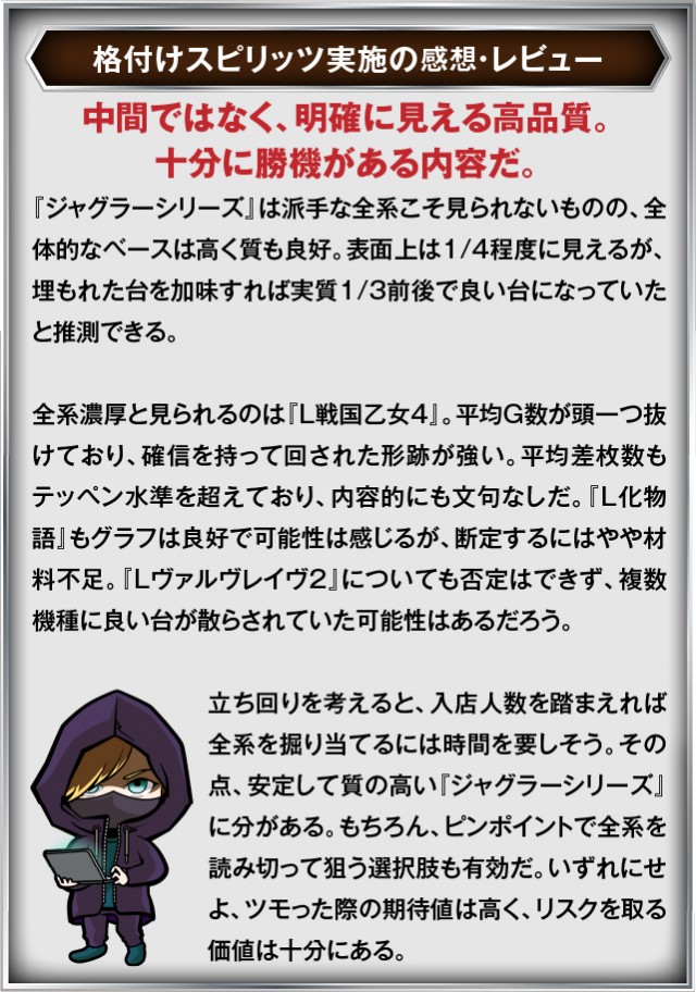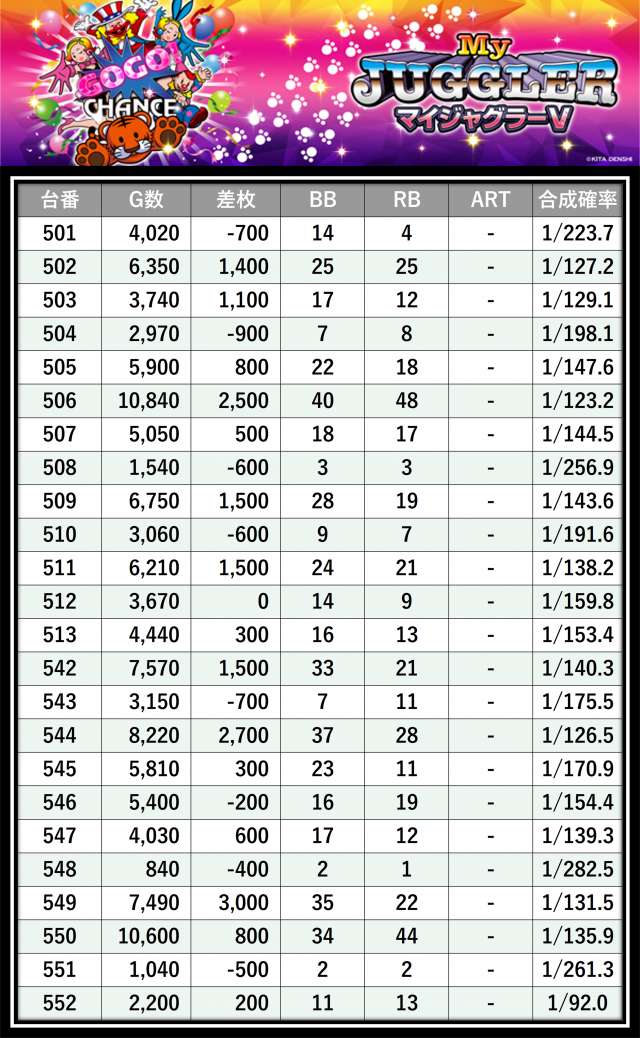 その結果の中から、ぱちタウンが注目すべきポイントを厳選してユーザーにお届け!プレイヤーが楽しんだ一日を下記データにて振り返ってみて欲しい。