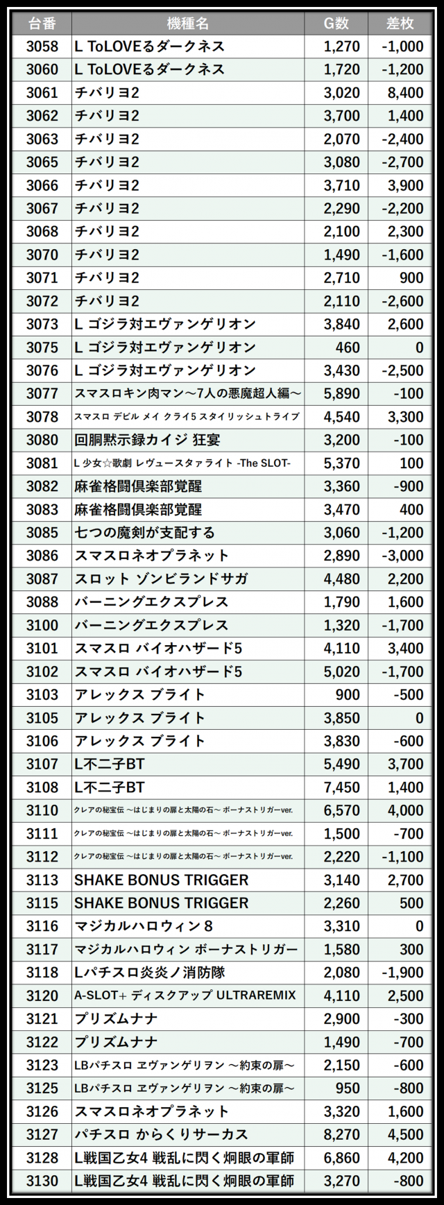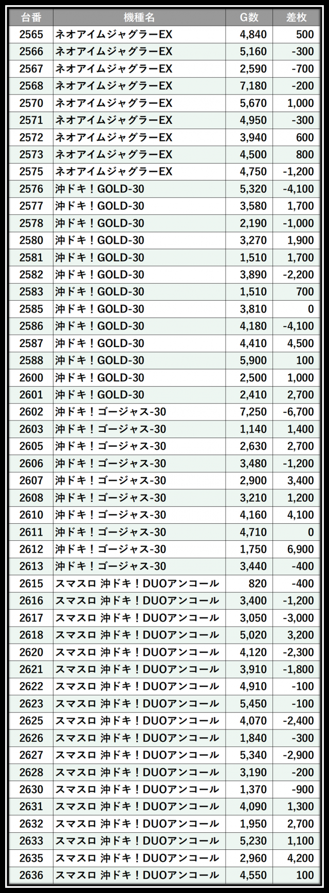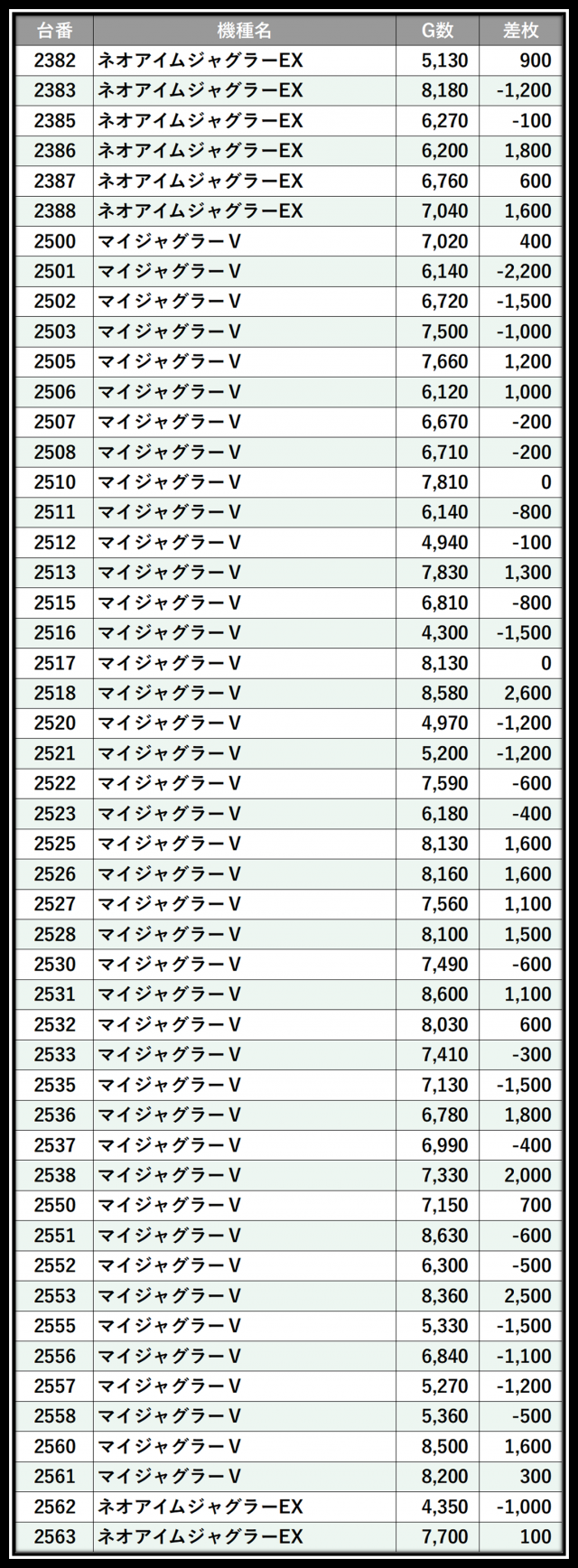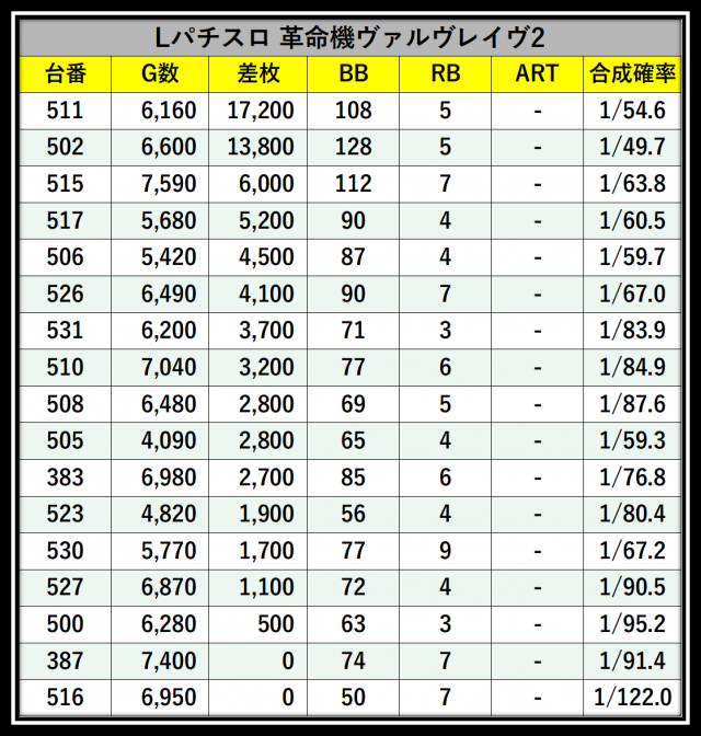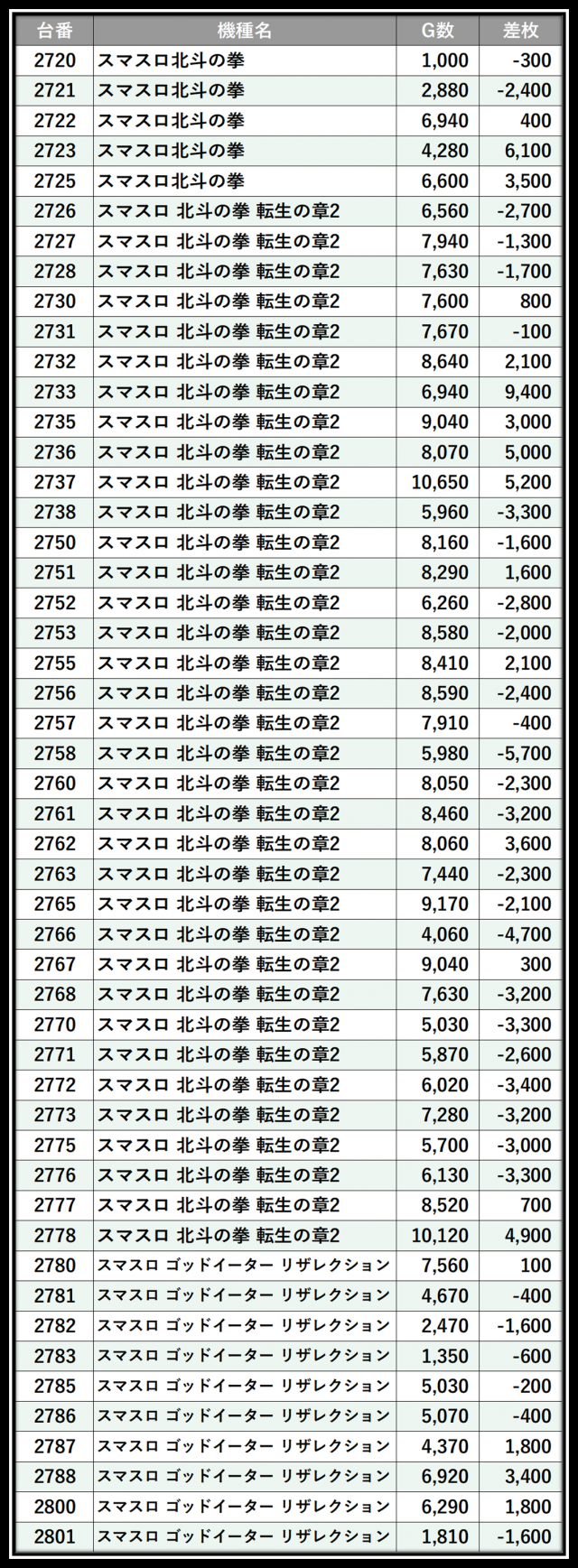 ※差枚数順に掲載しています