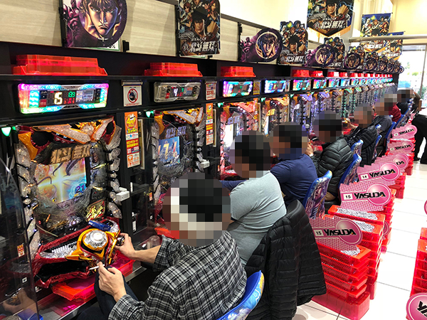 15時過ぎの4円パチンコでは、「ぱちんこCR真・北斗無双」や「ぱちんこCR北斗の拳7 転生」が大好評。華やかなムードがシマ中に広がり、プレイヤーたちの嬉しそうな表情も印象に残っている。