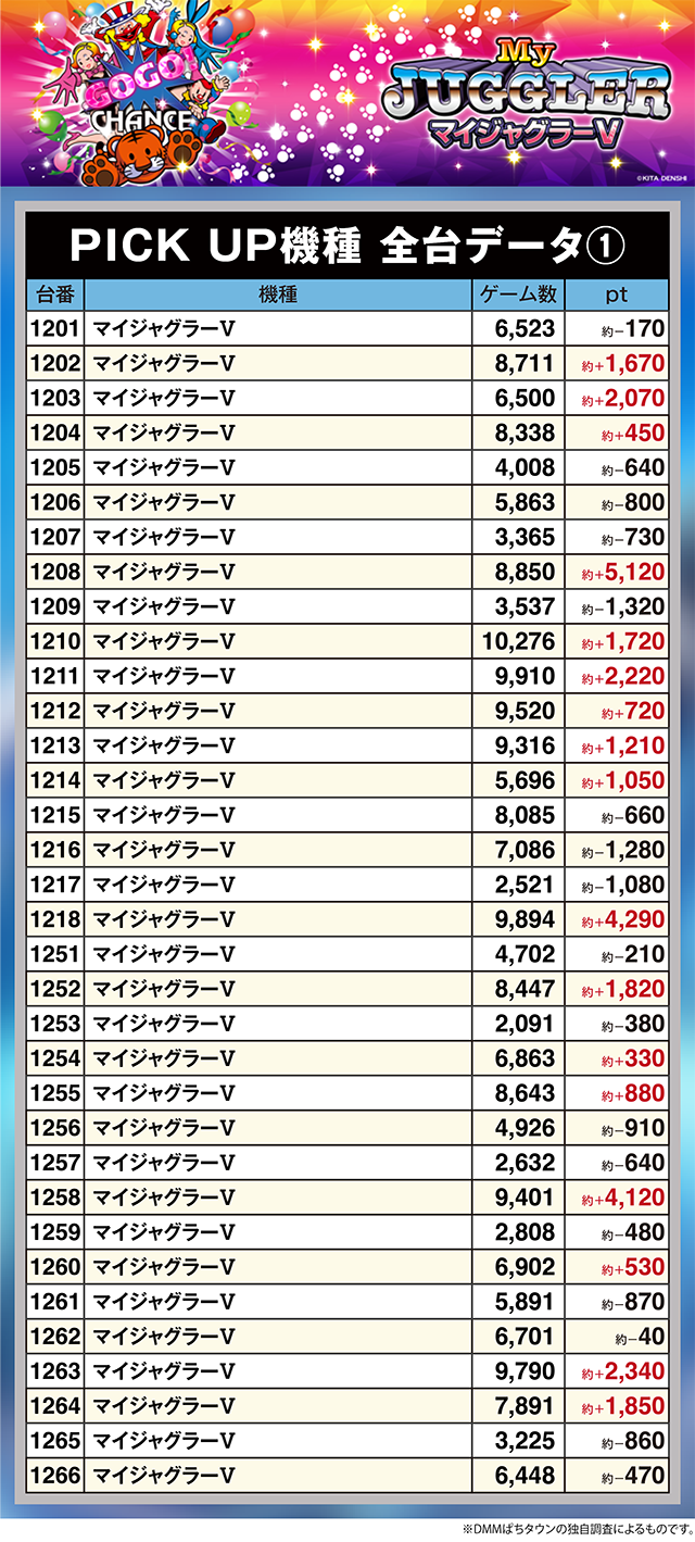 「マイジャグラーⅤ」の1208番台が約+5,120pt!