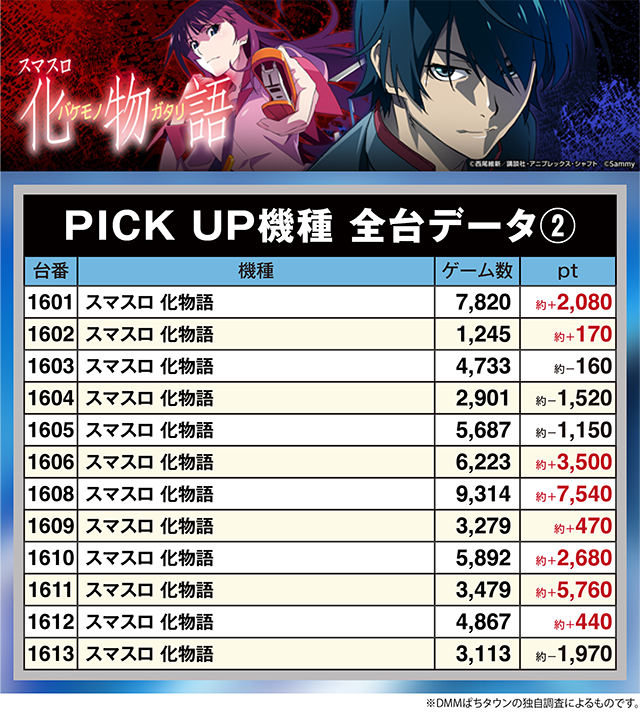 「スマスロ 化物語」では、1608番台が約+7,500ptオーバー!!