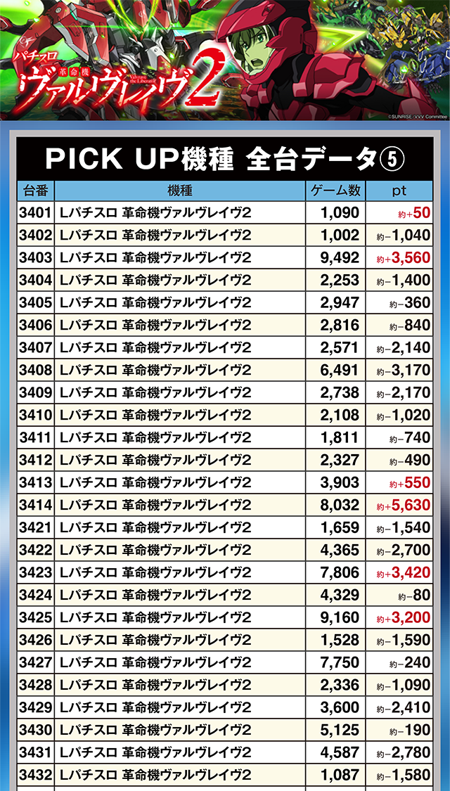 「Lパチスロ 革命機ヴァルヴレイヴ2」にも約+7,500ptオーバーとなった台アリ。