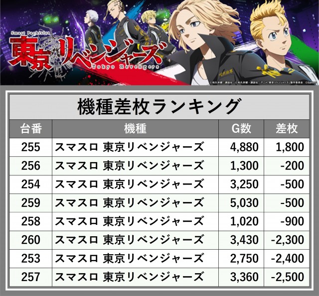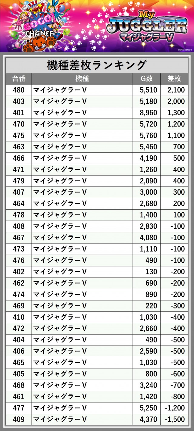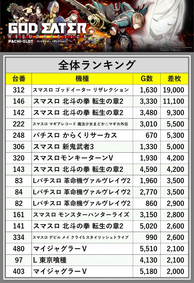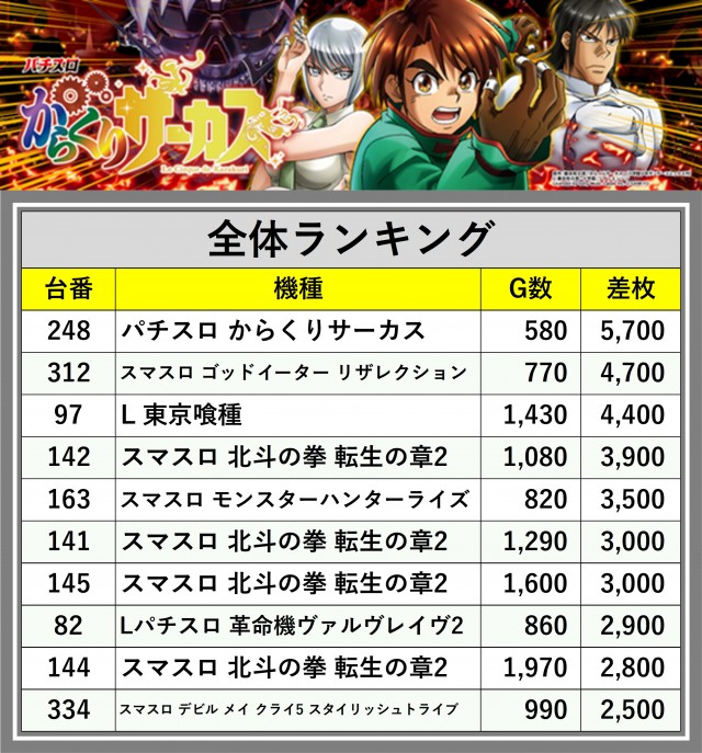 ※差枚数順に掲載しています
