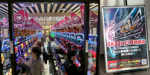 1月22日(木)M’s666菊水店にて、DMMぱちタウンの新感覚取材「スロセレ」を実施。