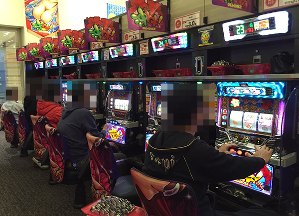この日も大勢のプレイヤーが訪れており、パチンコとパチスロの各シマからにぎわいが感じられた。