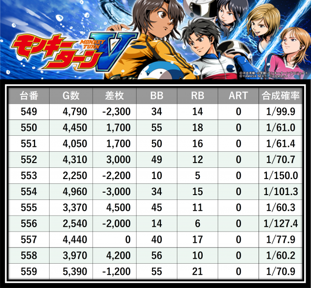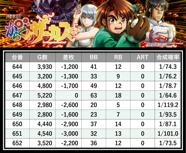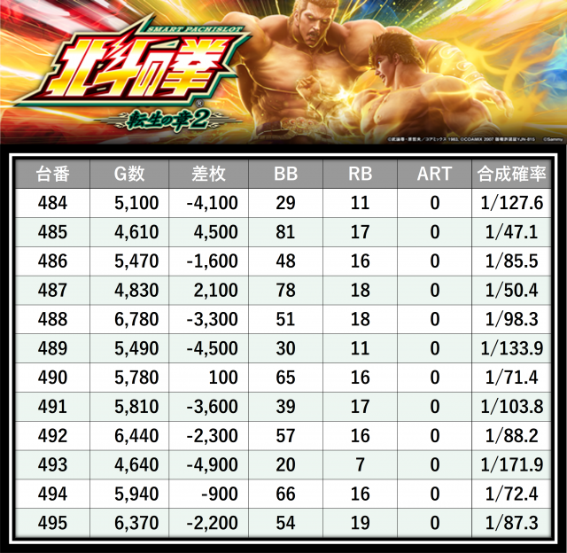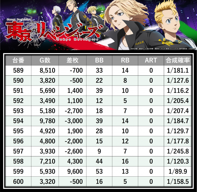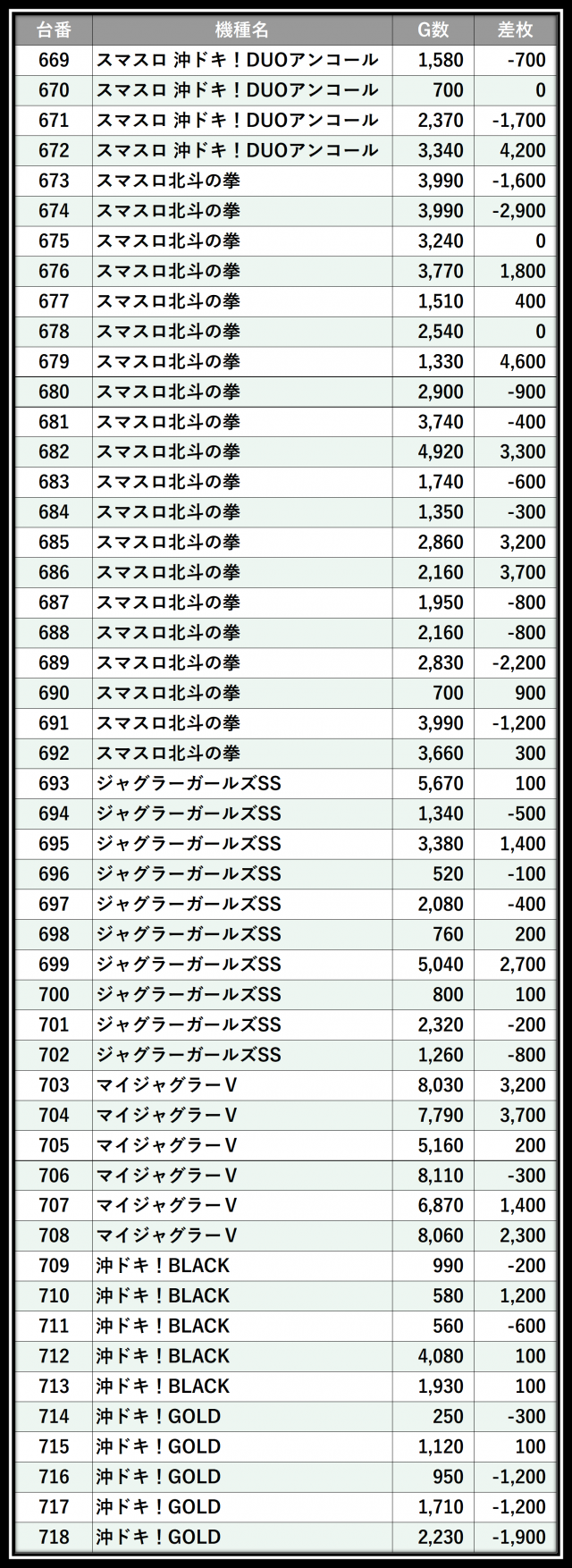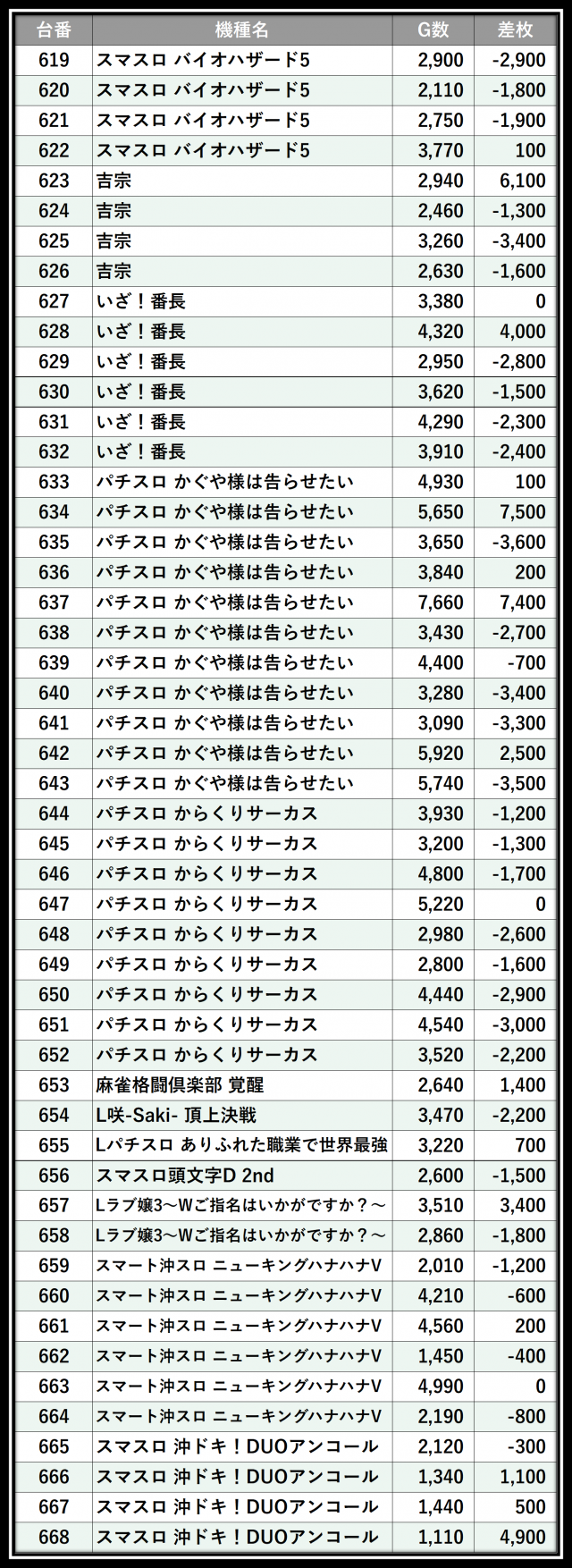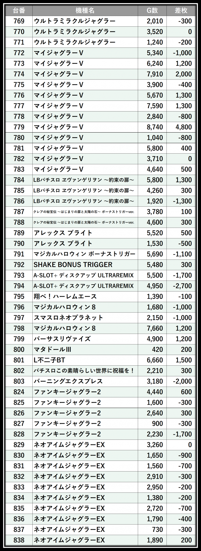 ※差枚数順に掲載しています