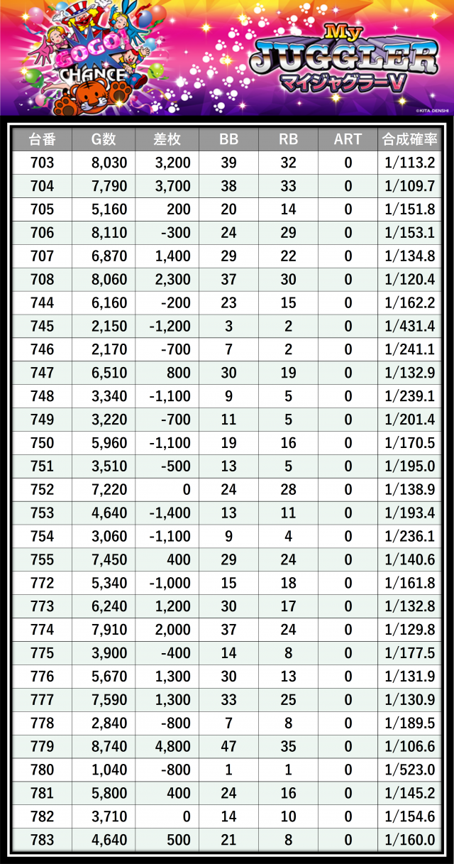 その結果の中から、ぱちタウンが注目すべきポイントを厳選してユーザーにお届け!プレイヤーが楽しんだ一日を下記データにて振り返ってみて欲しい。