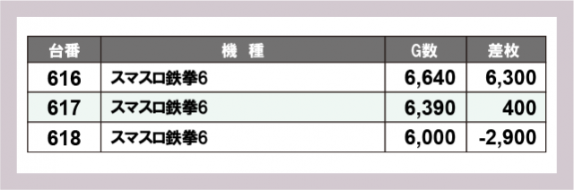 ※差枚数順に掲載しています