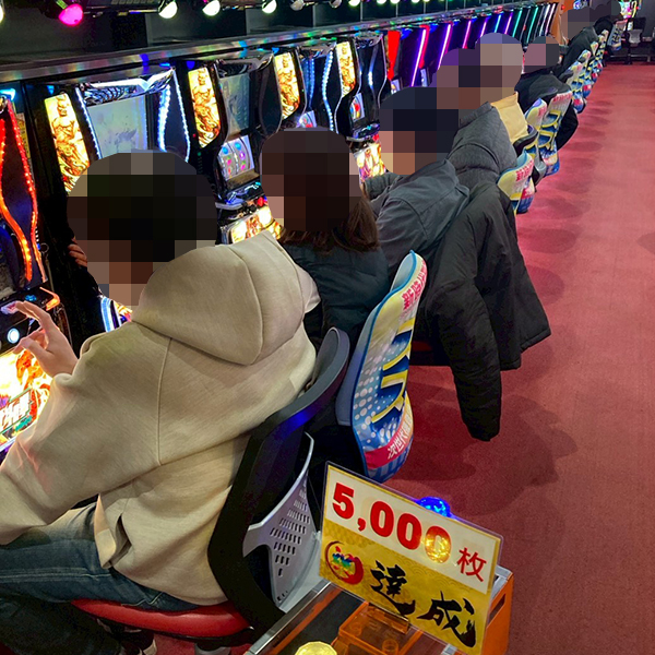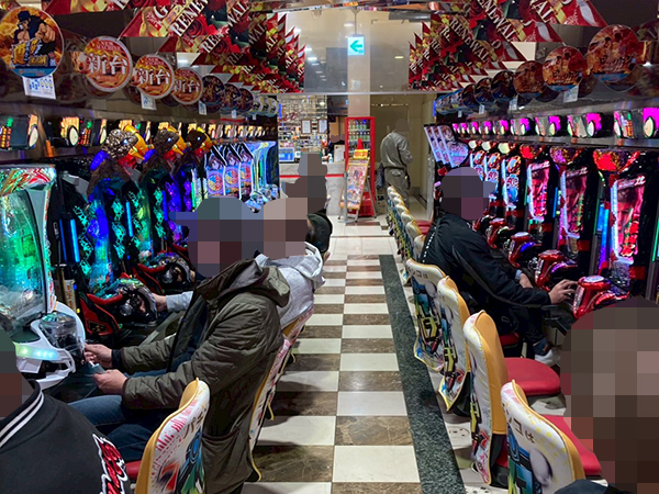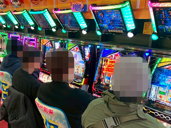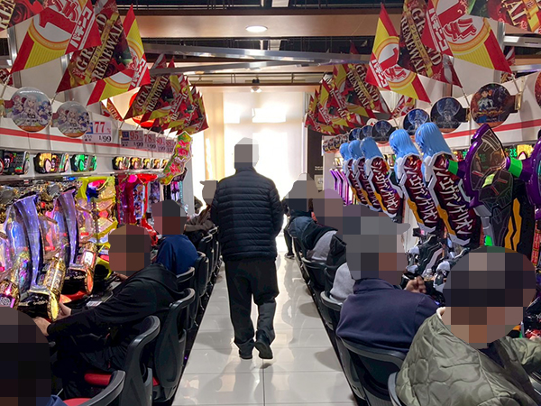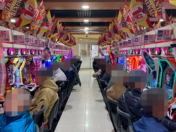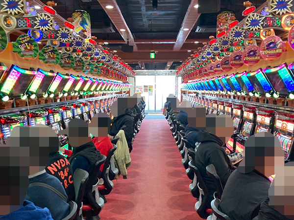 取材時は既に多くのプレイヤーが集結し、パチンコ・パチスロを問わずにぎやかな状況となっていた。