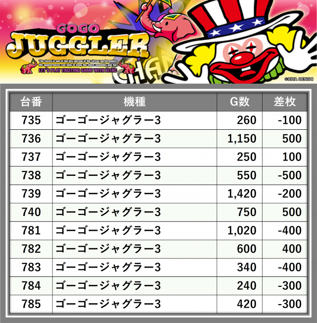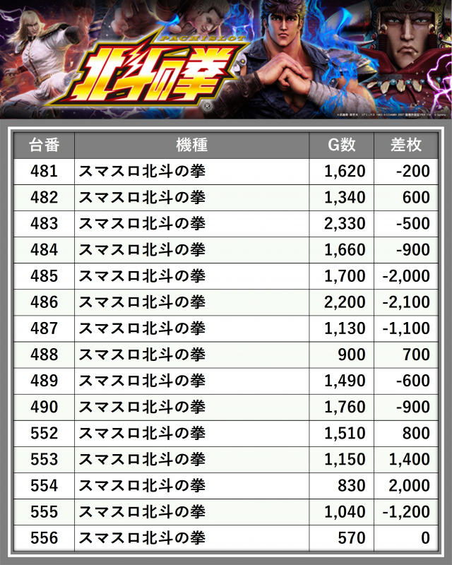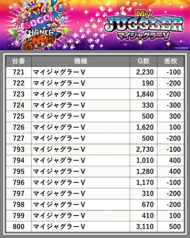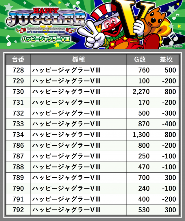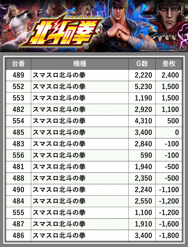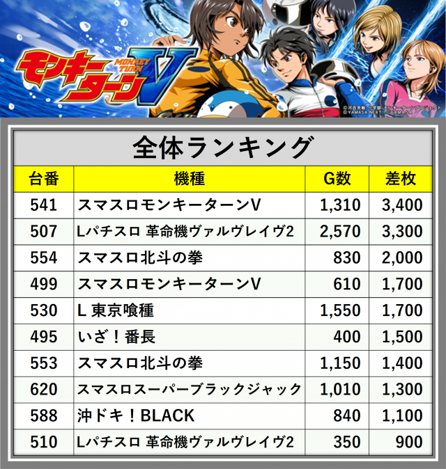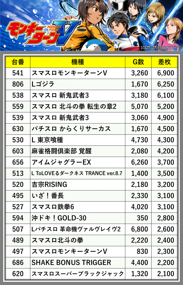 ※差枚数順に掲載しています