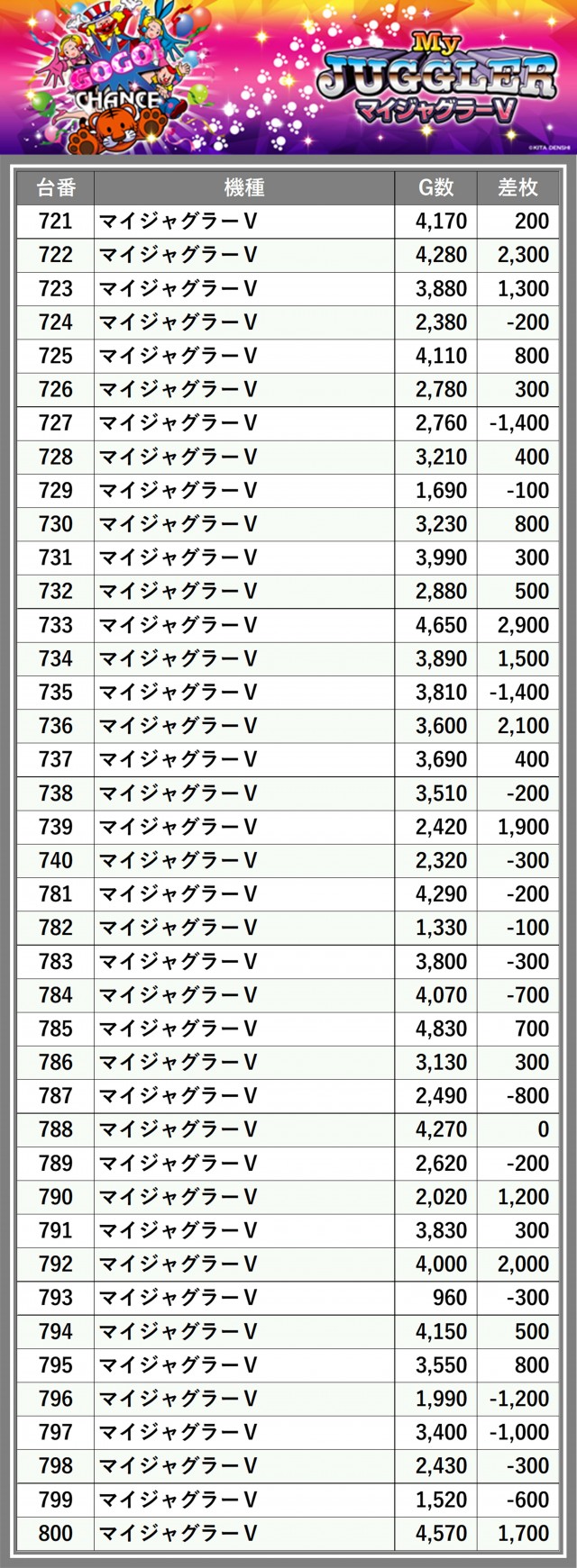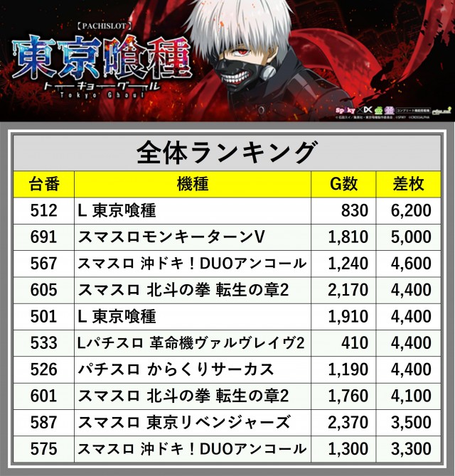厳選された取材対象機種をはじめ、その他スロット全体から好記録が飛び出した!プレイヤーが楽しんだ1日を下記データにて振り返ってみて欲しい。