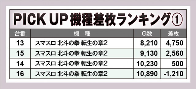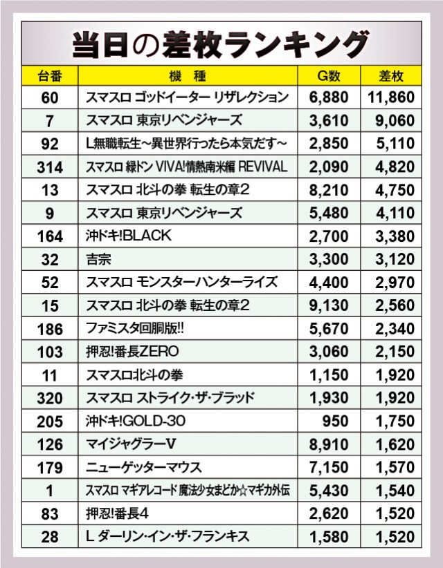 ※差枚数順に掲載しています。
