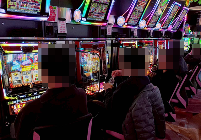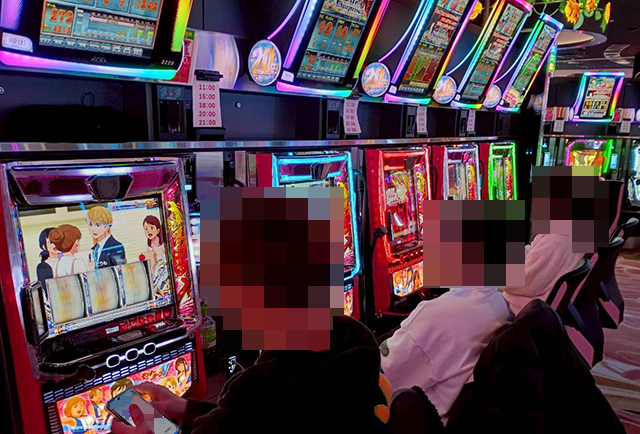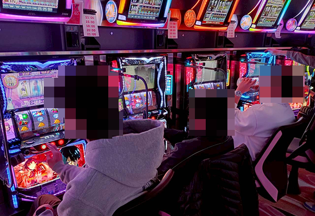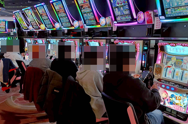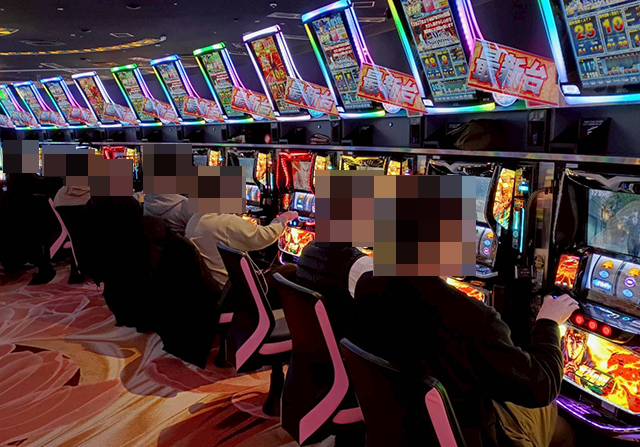午前中から大勢のプレイヤーが遊技を楽しんでおり、主役級の存在感を放つ機種が多かった。