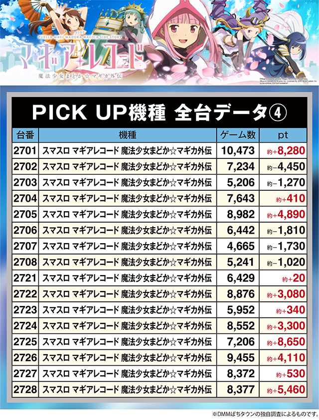 「スマスロ マギアレコード 魔法少女まどか☆マギカ外伝」は、2701番台と2725番台が約+8,200pt超!