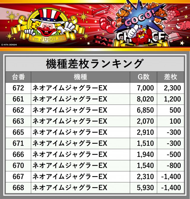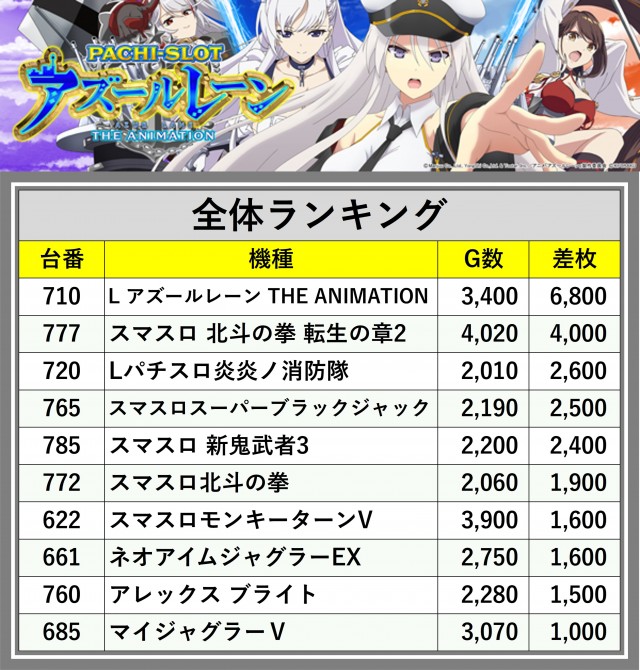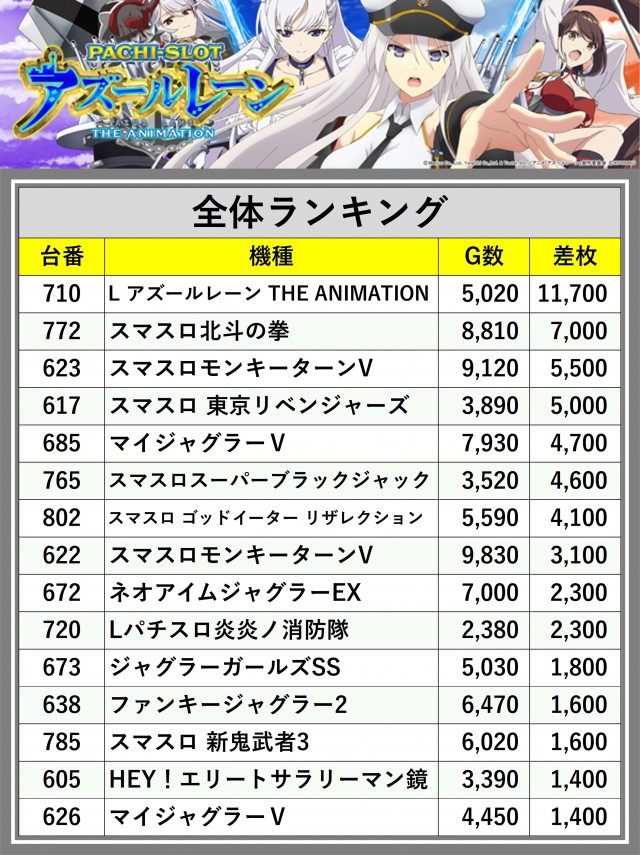※差枚数順に掲載しています