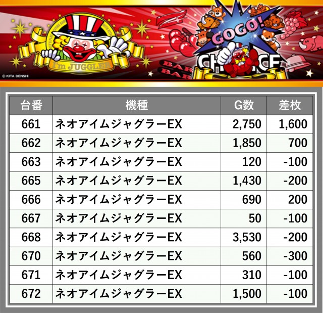 ※台番順に掲載しています