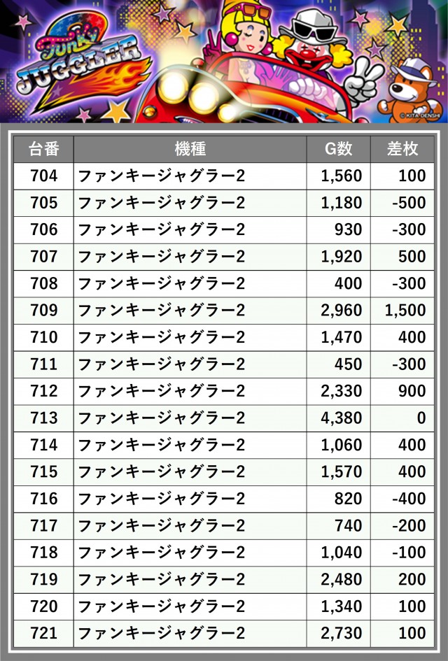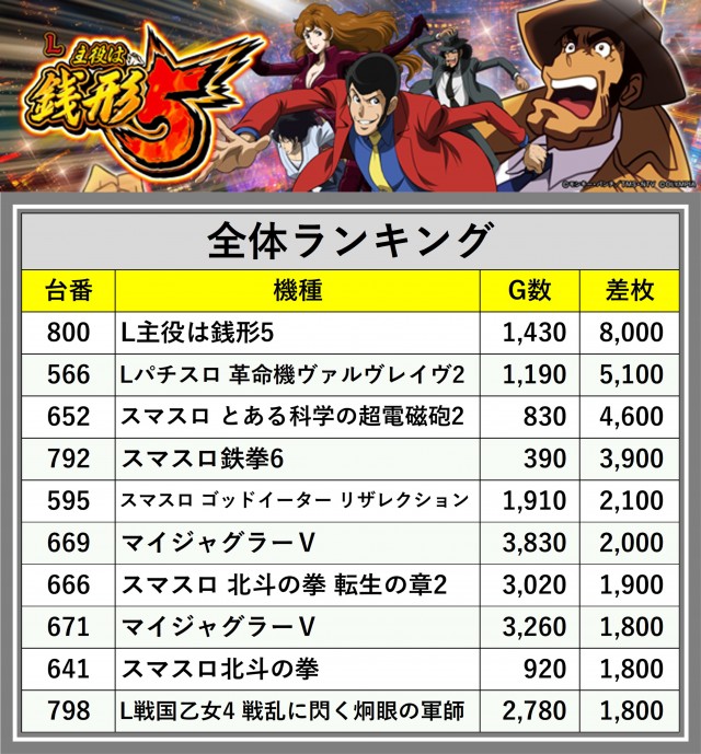 ※差枚数順に掲載しています