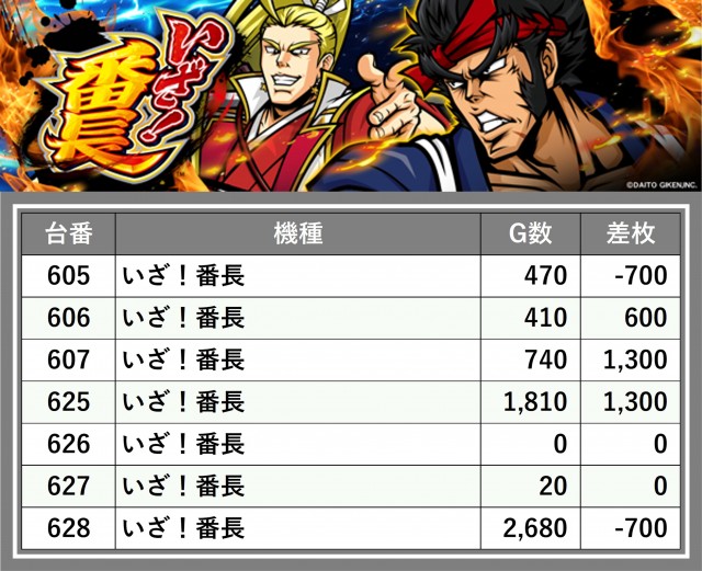※台番順に掲載しています