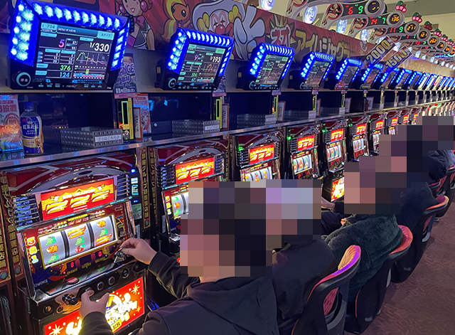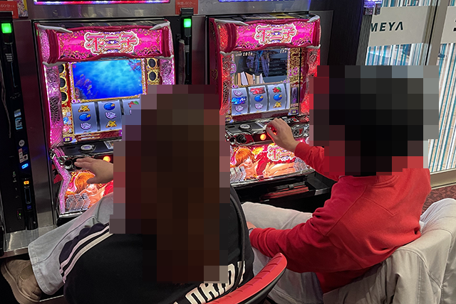 持ち玉を使い、うれしそうに遊技をおこなっていた。
