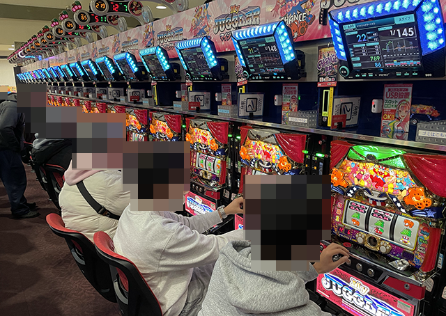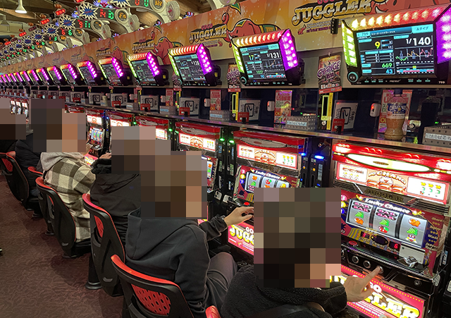 「マイジャグラーⅤ」も20回オーバーとなっている台が多く、いくつもの台で楽しげな姿をみられた。