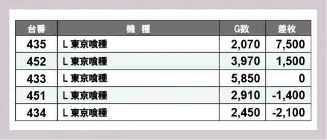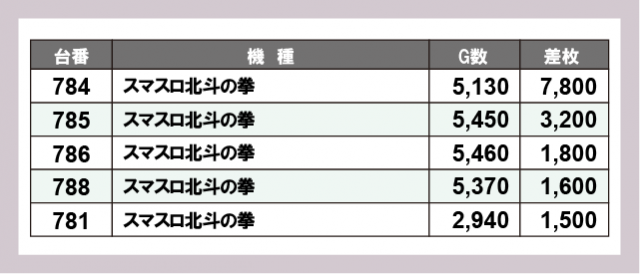 ※差枚数順に掲載しています