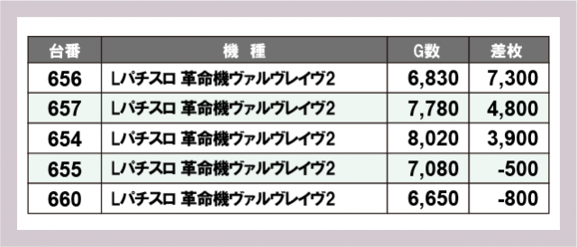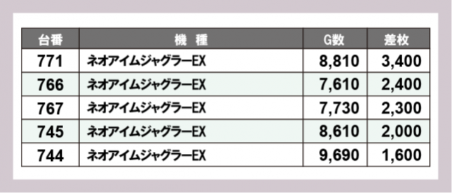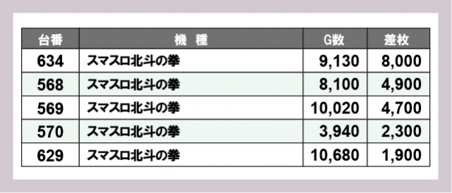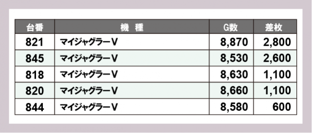※差枚数順に掲載しています