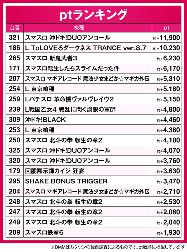 ※なお、本記事中のデータは全てDMMぱちタウンの独自調査によるものです