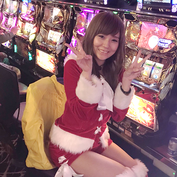 この日はDMMぱちタウンの人気企画“新スロスロ女子部No.1~美人ライター集結編!!~”の実戦のため、カナPさんが来店。かわいらしいサンタのコスプレで、注目の的となっていた。