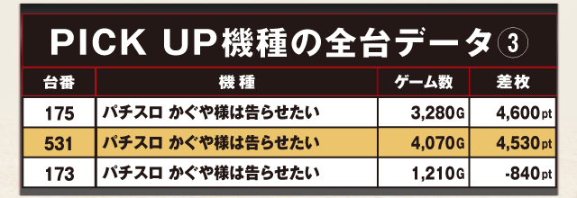4台がプラスptと好調な結果。主に稼働が高かった台が結果をのこしていたようだ。