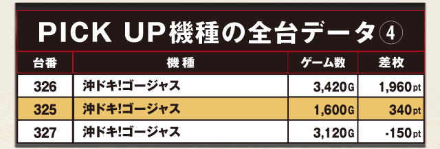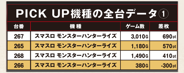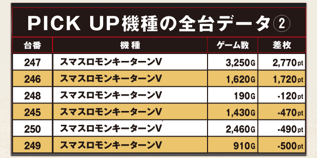 PiCK UP機種の全台データ