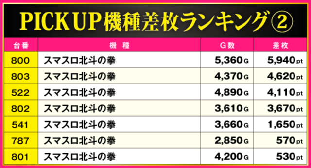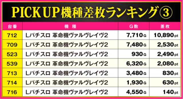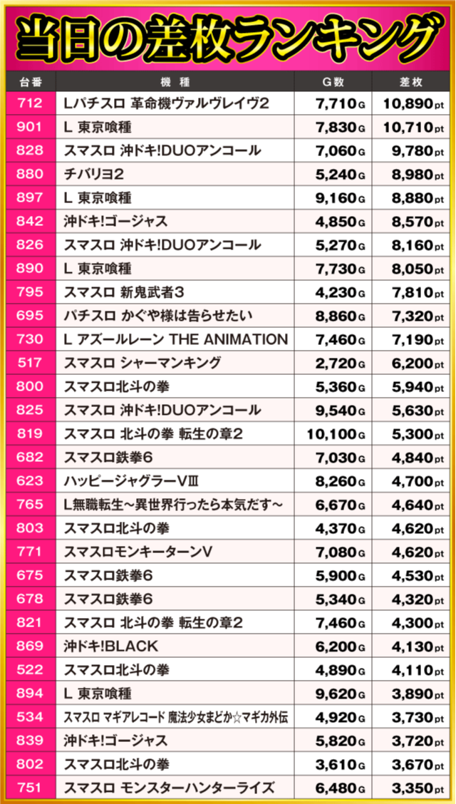 当日の差枚ランキング