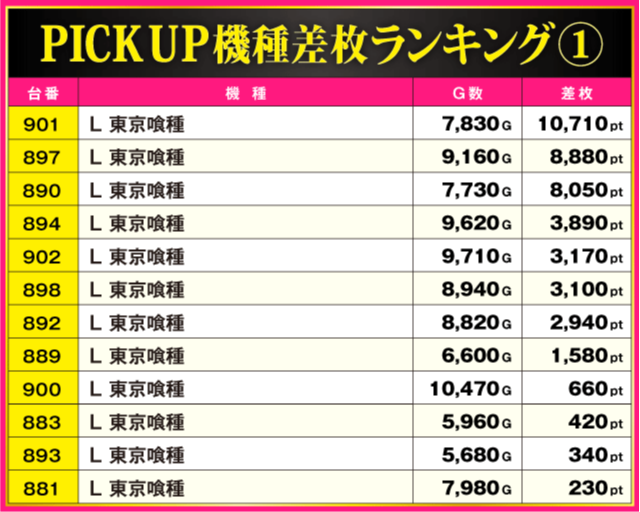 ※差枚pt順に掲載しています。