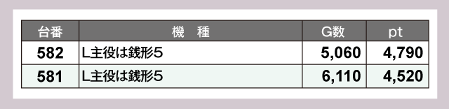 『L主役は銭形5』は設置されている2台ともが4,000ptオーバーを達成。ポテンシャルを存分に発揮している。
