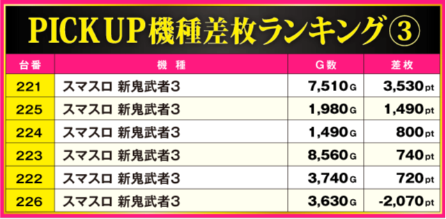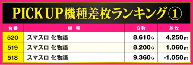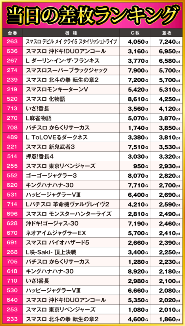 当日の差枚ランキング