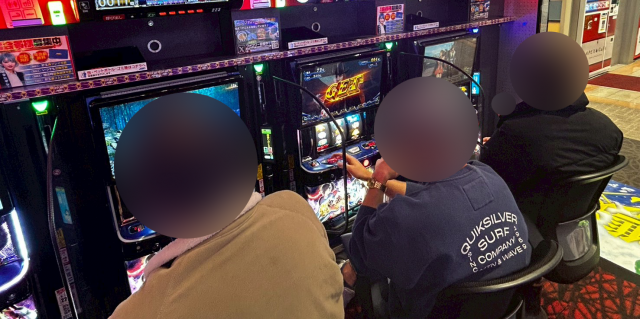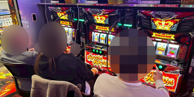 次にPICK UP機種の状況をチェックしていくと、『スマスロ 化物語』からは+4,250pt、『キングハナハナ-30』からは+2,000pt超が2台発生。さらに、『スマスロ 新鬼武者3』は+3,530ptを筆頭に全6台中5台がプラス差枚となっており、それぞれのシマは終日ファンの笑顔と活気に満ち溢れていた。