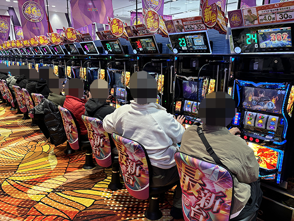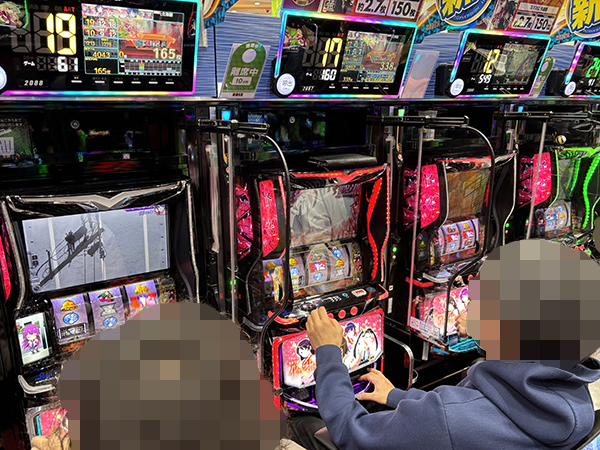 「スマスロ 化物語」や「L アズールレーン THE ANIMATION」、「防空少女ラブキューレ2〜極限の共鳴〜」も大盛り上がり。機種の醍醐味を味わうプレイヤーを複数目にしている。