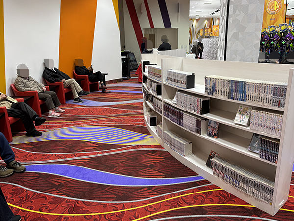 レストスペースには様々なジャンルの漫画本が用意されており、休憩時間などで利用すれば、有意義なリラックスタイムを過ごせるはずだ。