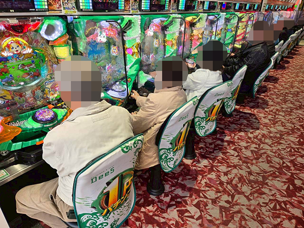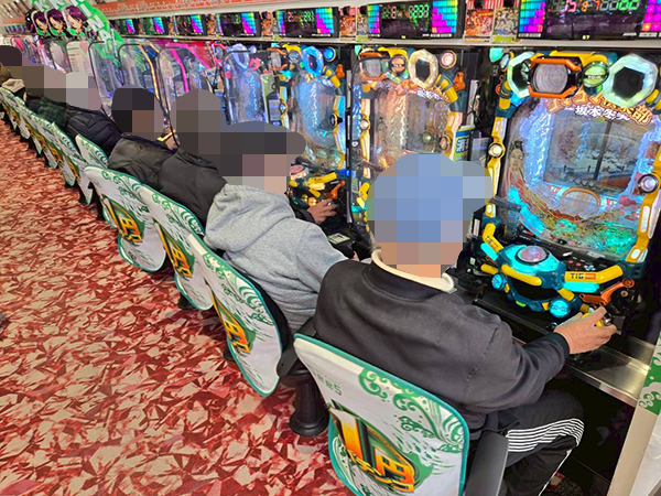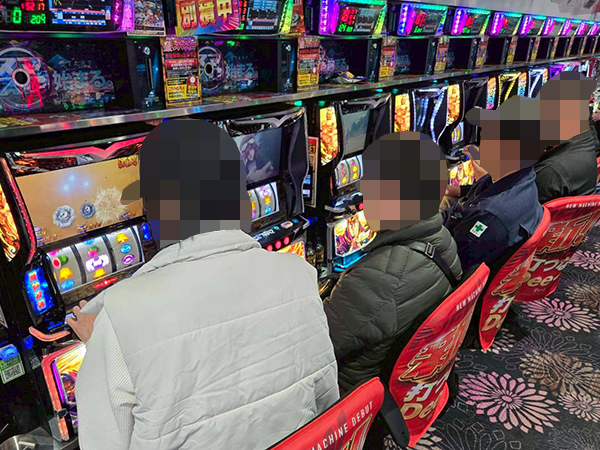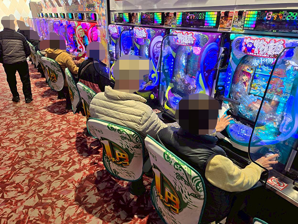 取材時は既に多くのプレイヤーが集結し、パチンコ・パチスロを問わずにぎやかな状況となっていた。