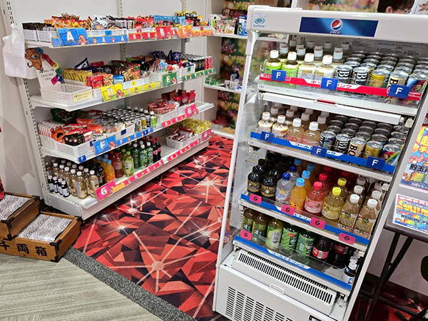 景品コーナーにはお菓子やドリンク類など多彩なアイテムが並んでおり、プレイヤーたちの興味を引いていた。