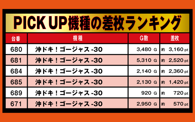 30パイPICK UP機種の差枚ランキング
