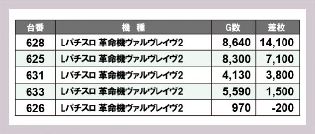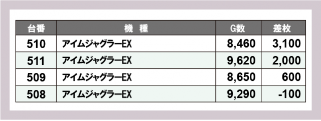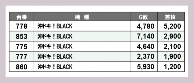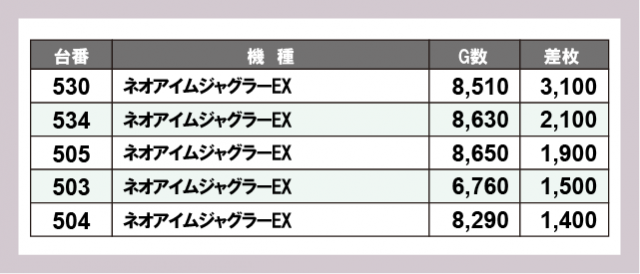 ※差枚数順に掲載しています