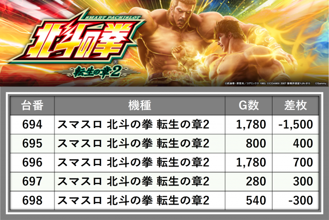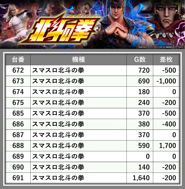 ※台番順に掲載しています